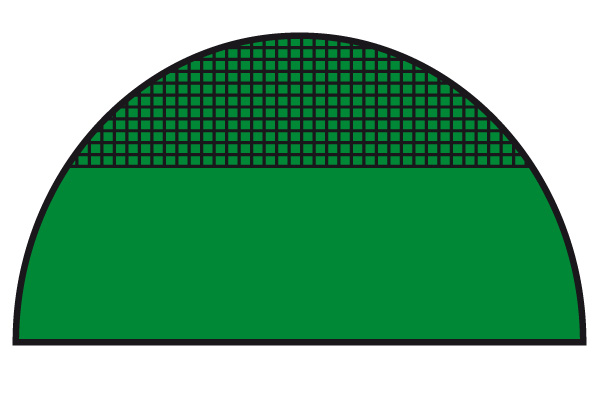- Giebel mit 1/2 Windschutznetz und 1/2 Plane